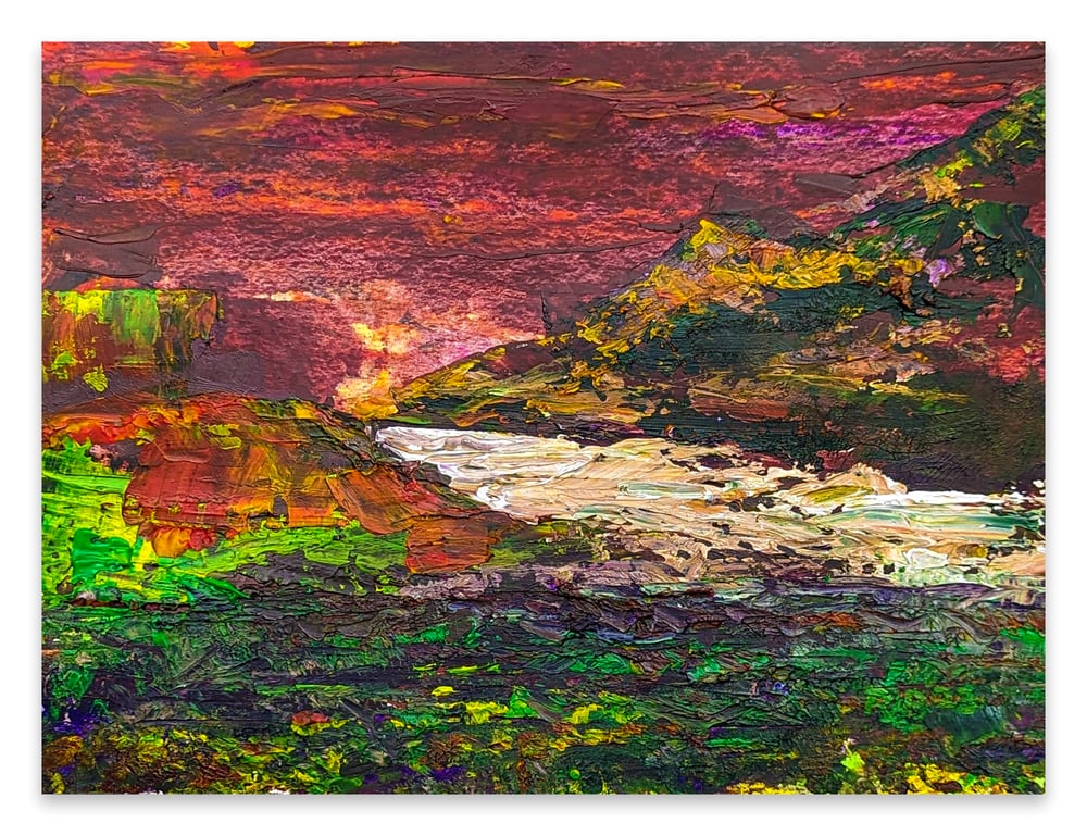 Another one of Rob's "drag" paintings, leftover colors from completed larger works are molded into an abstract landscape.