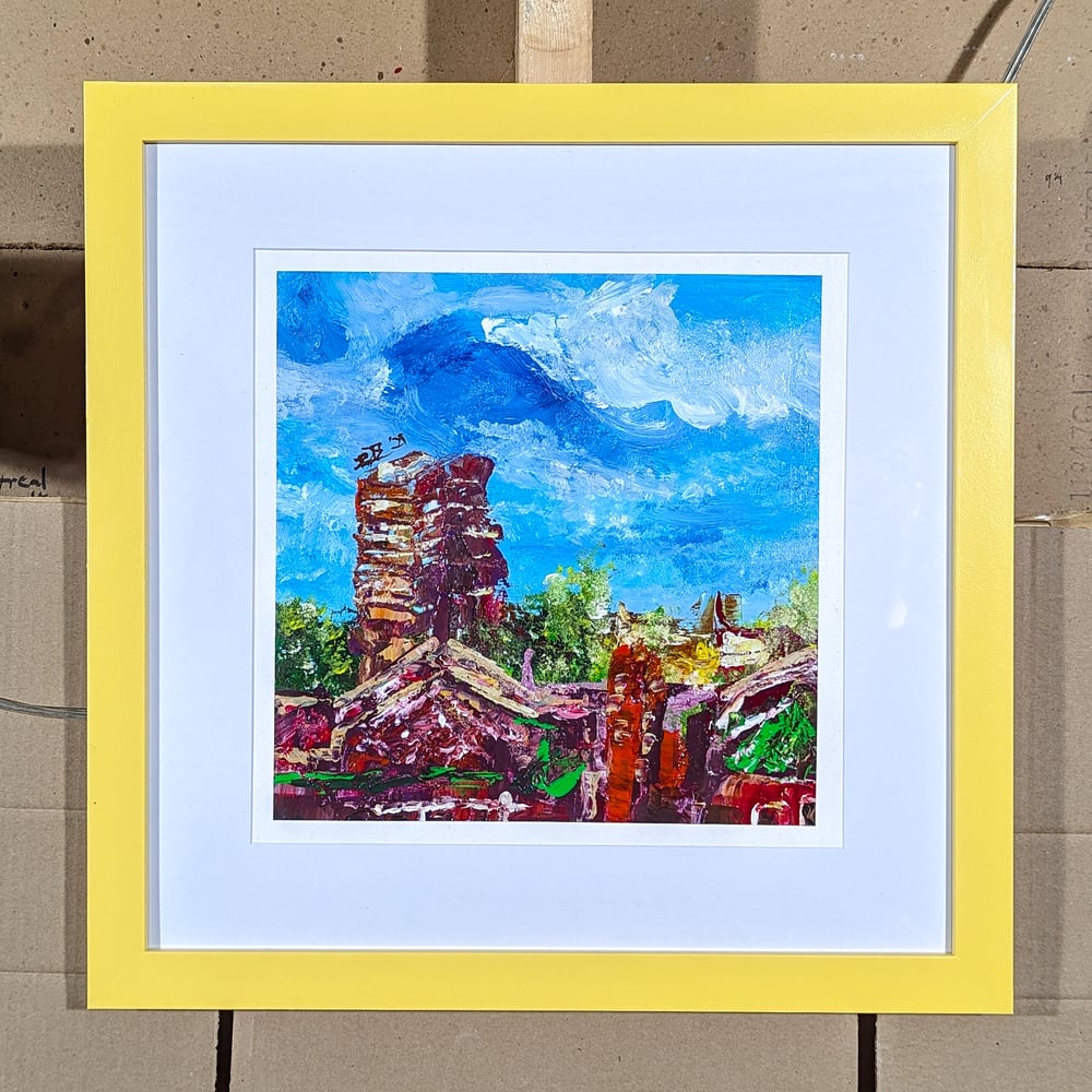 This piece comes framed. Framed size is 16" x 16" x 1"