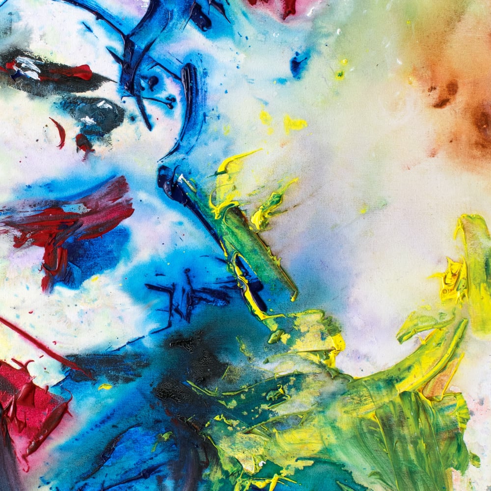 One of my larger pieces, this abstract self portrait uses aggressive, broad palette knife movement with a celestial background.
