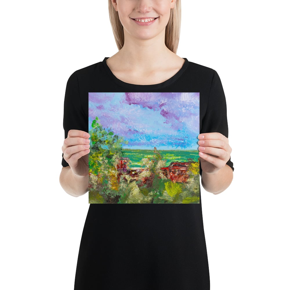 This print explores my traditional and Impressionist training from back when. I decided to paint a view over Lake Michigan from my apartment window. The water was especially rough and the clouds had a strange tint to them.